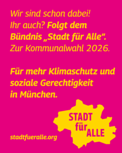 Gemeinsam mit zahlreichen zivilgesellschaftlichen Organisationen haben wir deshalb konkrete Forderungen an den Münchner Stadtrat zur Kommunalwahl 2026 formuliert.
